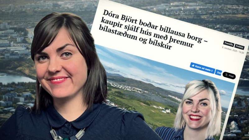Fyrirsögn Nútímans var: Dóra Björt boðar bíllausa borg – kaupir sjálf hús með þremur bílastæðum og bílskúr. Dóra svarar skrifunum í færslu á Facebook þar sem hún rekur að hún sé hluti af samsettri fjölskyldu og að stjúpsonur hennar sé í skóla í Grafarvogi. Hún hafi eignast sinn fyrsta bíl eftir að yngri sonur hennar, þriggja ára, kom í heiminn enda ekki hlaupið að því að koma börnunum í skóla og leikskóla og ná sjálf í vinnu á réttum tíma með almenningssamgöngum.