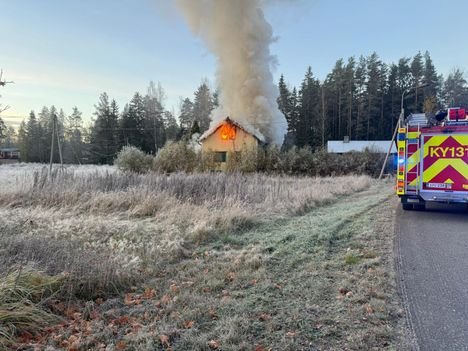 Sen arvion mukaan noin 80 neliön talo tulee tuhoutumaan kokonaan palossa. Pelastuslaitos purkaa ja sammuttaa rakenteita.